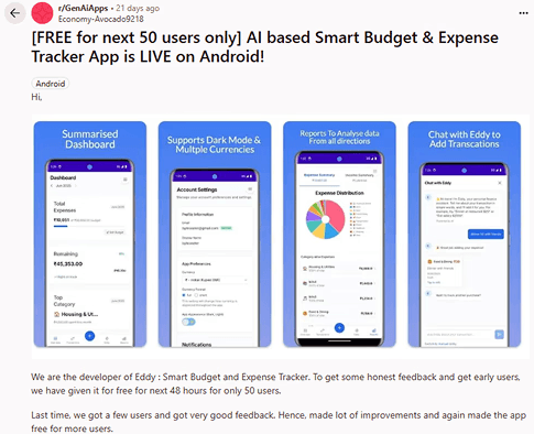 I noticed a recurring behavior on platforms like Reddit, where people are coming up with apps that uses AI for businesses, expense tracker etc. These types of apps and posts got me thinking.